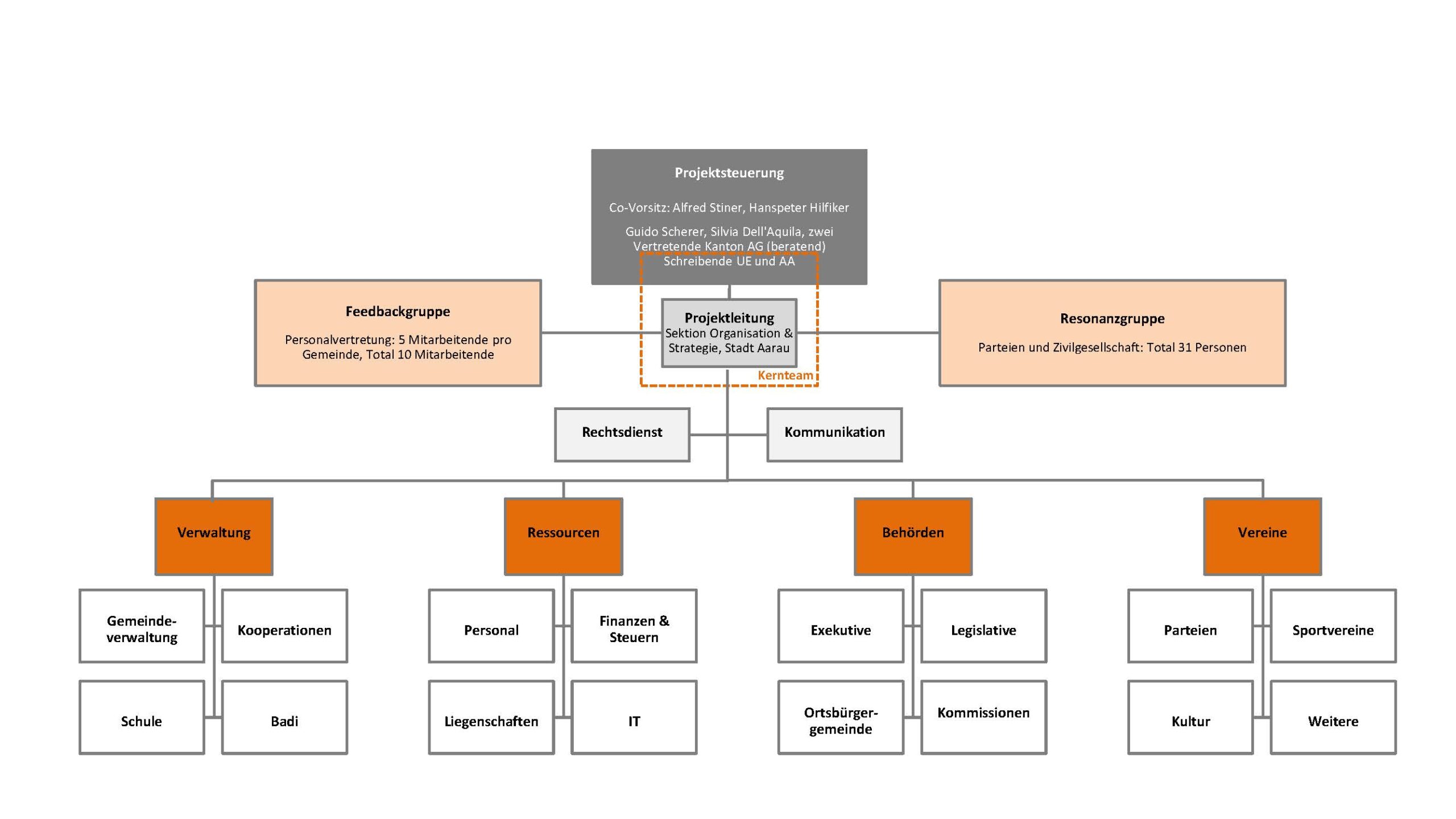 Ausserdem verpflichtete sich die Projektsteuerungsgruppe, die Bevölkerung, politische Parteien und verschiedene Interessensgruppen aktiv in den Prozess des Zusammenschlusses miteinzubeziehen. Um dieser Verpflichtung gerecht zu werden, wurde die Bildung einer Resonanzgruppe bestehend aus Einwohnerinnen und Einwohnern, Parteien, Fraktionen, Vereine und Ortsbürgergemeinde sowie die Bildung einer Feedbackgruppe bestehend aus Mitarbeitenden der Stadt Aarau und der Gemeinde Unterentfelden geplant.