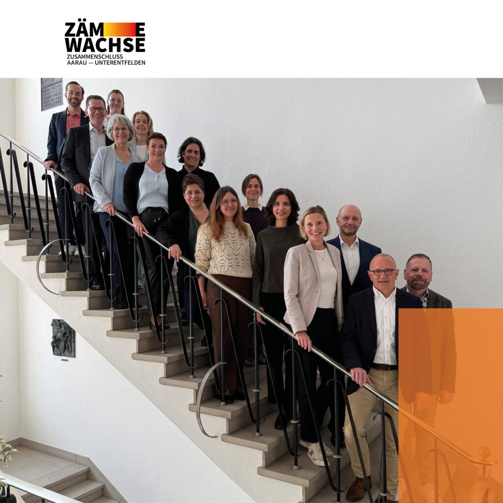 Die Mitarbeitenden beider Gemeinden sind für die Projektsteuerung von «Zäme wachse» von zentraler Bedeutung. Es war dem Projektteam von Anfang an ein Anliegen, den Mitarbeitenden beider Verwaltungen frühzeitig Sicherheit, Stabilität und eine klare Zukunftsperspektive aufzuzeigen. Aus diesem Grund haben sowohl der Stadtrat von Aarau als auch der Gemeinderat von Unterentfelden die Überführungsgrundsätze beschlossen.